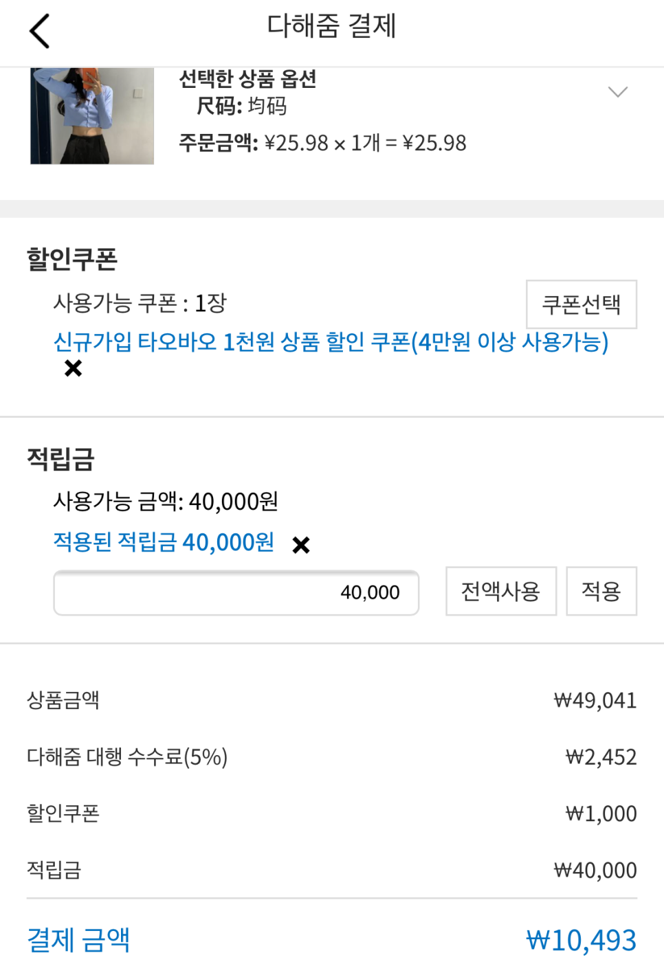 사만원 적립금쓴거 치고도 오만원정도 금액.