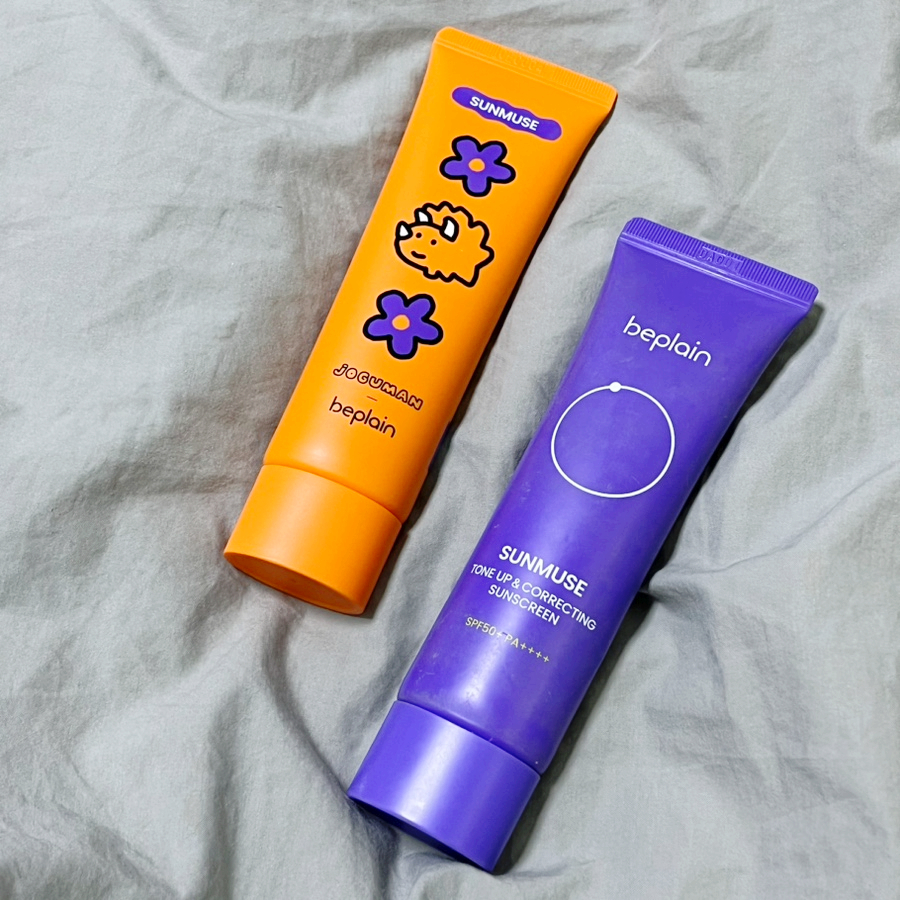 저번에 비플레인 선뮤즈 톤업앤코렉팅 선크림을 사용 해 보고 진심으로 마음에 들어서 한 통을 다 비운 뒤 내돈내산으로 한 통 더 사서 쓰고있었거든요!!