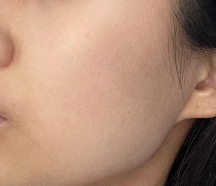 바른 뒤, 피부 노란빛을 확실하게 코렉팅해줘 자연스럽지만 확실한 톤업이 되었고 불긋불긋한 실핏줄도 어느정도 커버되었어요.