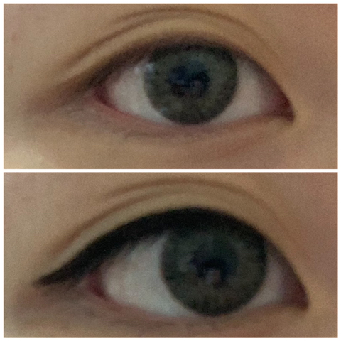 제 눈에 한번 그려보았습니다. 역시 부드럽게 발색되고 눈이 또렸해졌습니다. 여러번 세게 감았다 뜨며 방치했을 때 번지지 않고 유지되었습니다.