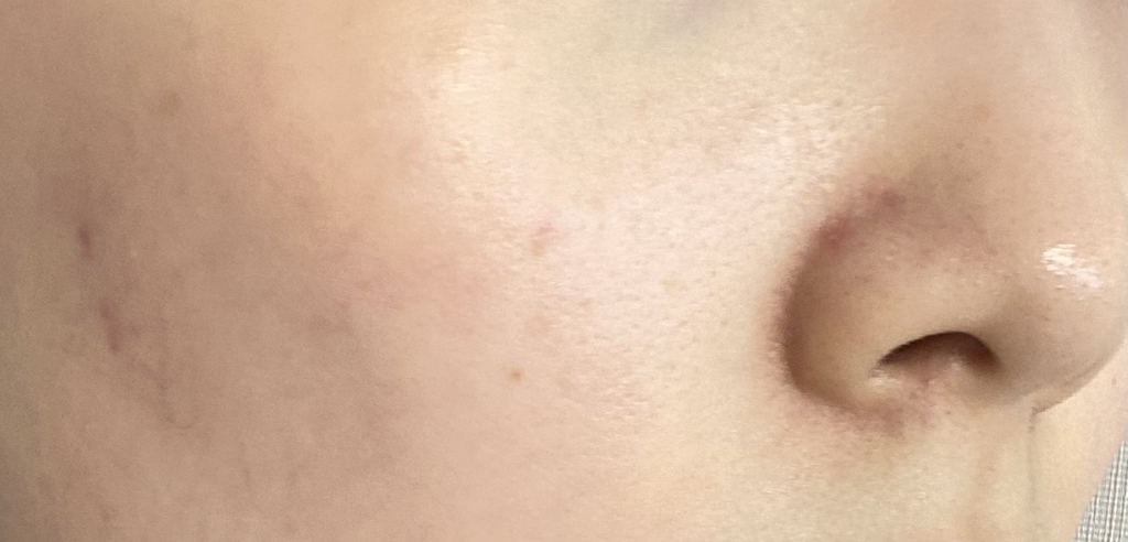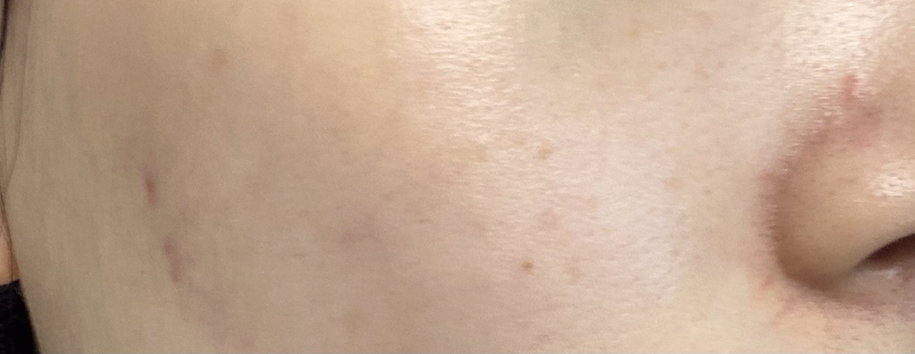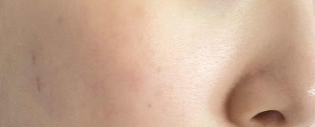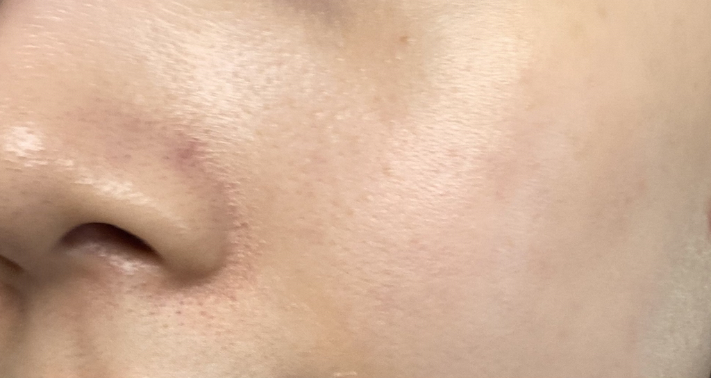 요철도 많이 정리되어 보이고, 붉은 기도 많이 진정되고, 수분감도 돌아서 피부가 맑아 보이죠!?