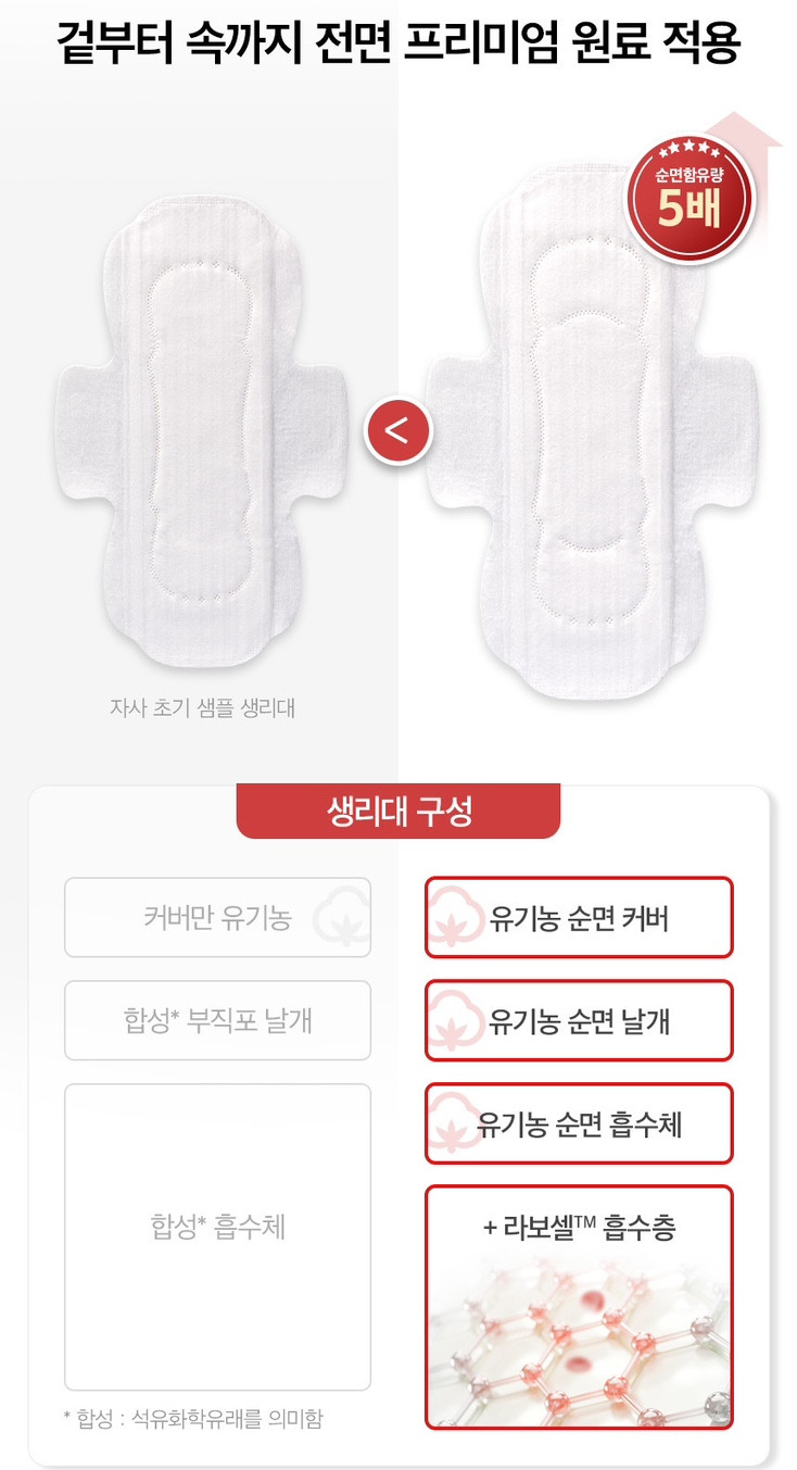 이너시아 생리대는 라보셀 흡수체 기술이 핵심인데요