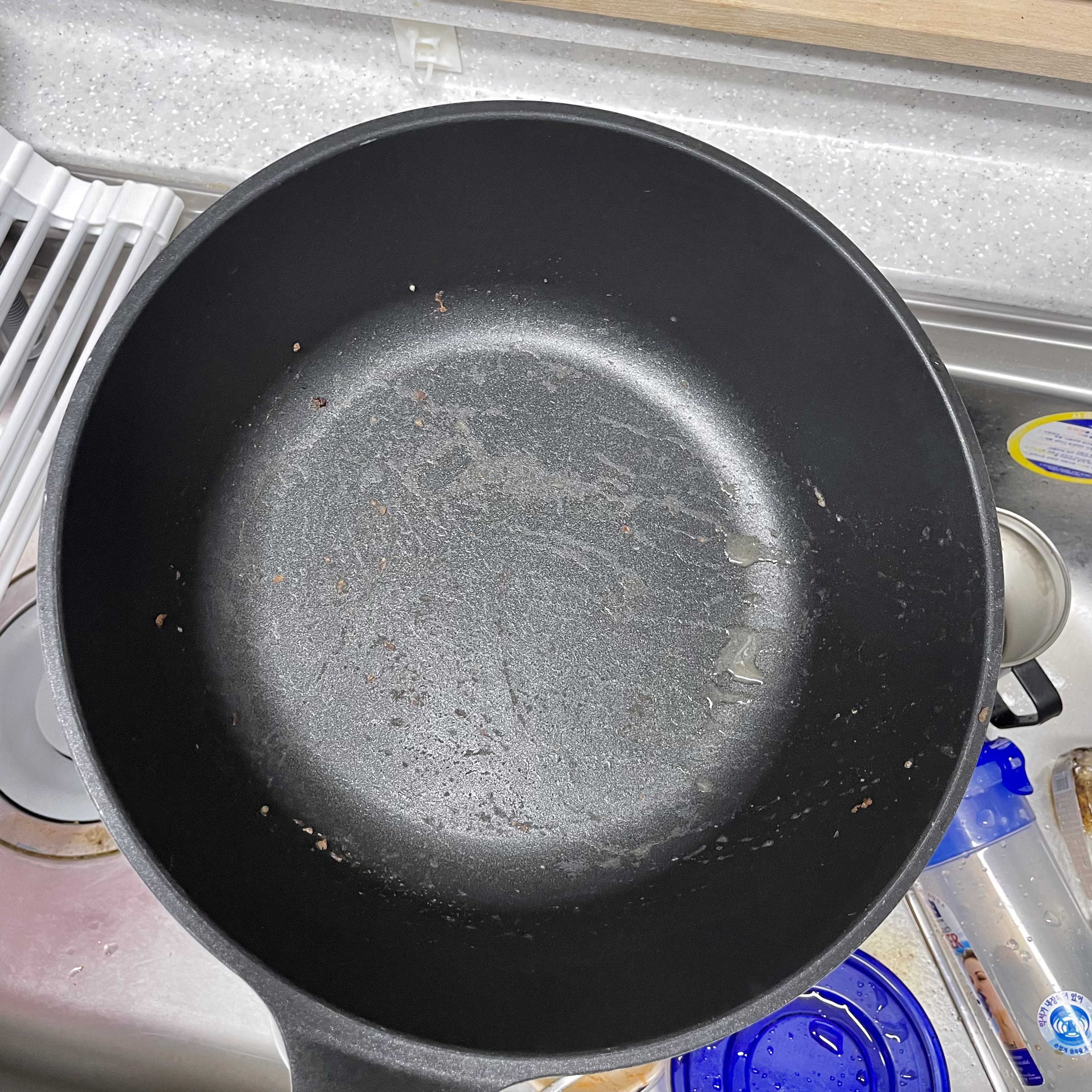 불고기 볶은 후라이팬 그냥 싱크대에 그대로 방치해서 기름 굳어버린거야 ^^ㅎㅎㅎㅎㅎ