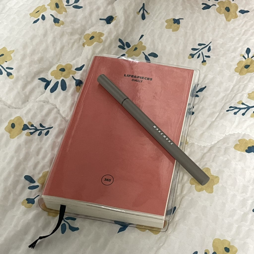 제품명처럼 아이라이너 본품 자체도 매트한 케이스였고, 웨이크메이크 레터링이 되어있어 너무 고급스럽고 디자인부터 만족스러웠어요 ㅠㅠㅠ 파우치에 넣어다니면 기분좋을..👍 색감이 왠지 제 다이어리랑 어울릴 것 같아서 한 컷 찍어봤는데 넘나 예쁘쥬??!!!!