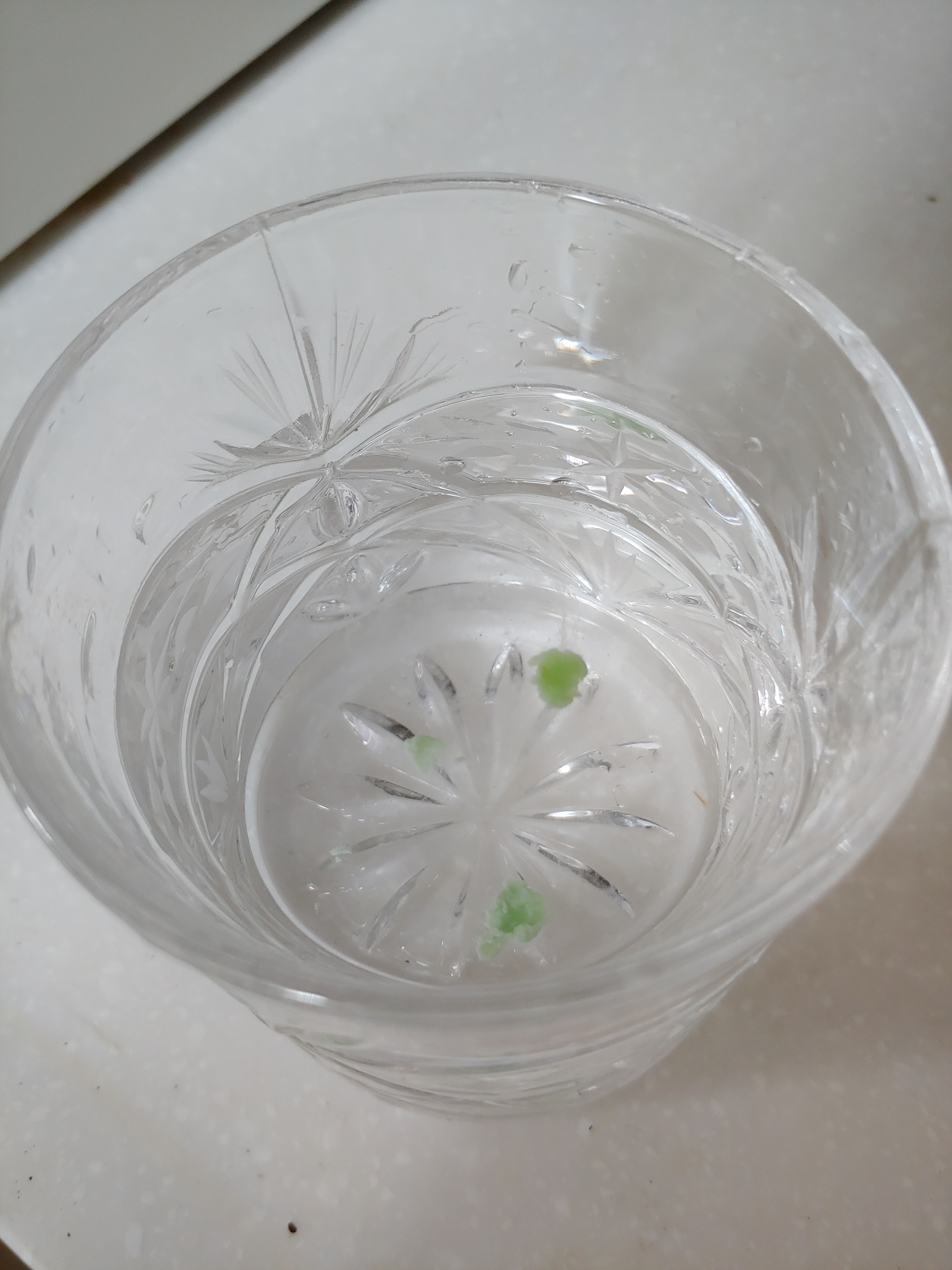7. 찬물이 담긴 유리컵에 잼을 한두방울 떨어뜨린다