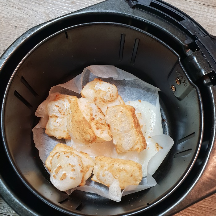 (종이호일이랑 떡이랑은 잘 떨어지니까 꼭 깔아줘 안그러면 에프 팬 사이로 흘러내림 ㅠ)