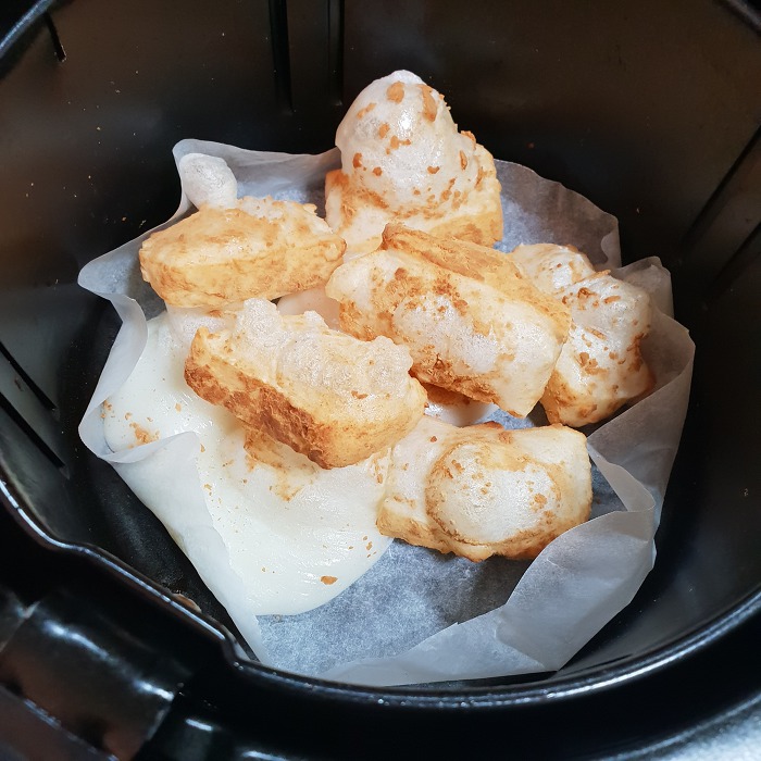 이거는 180도 10분한거 - 완전 많이 늘어나고 많이 튀어나옴,...껍데기는 바삭햇어...