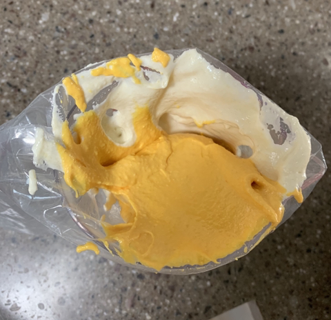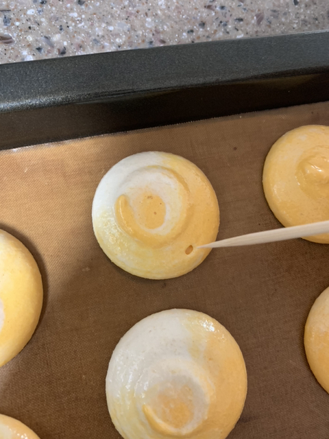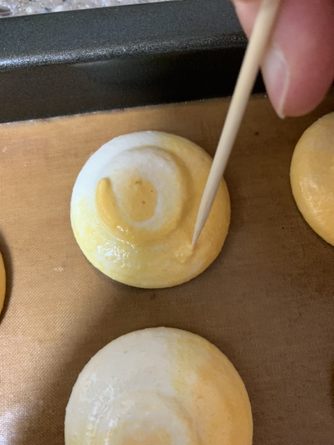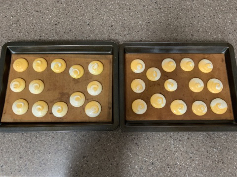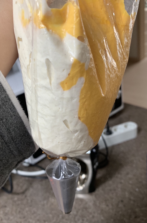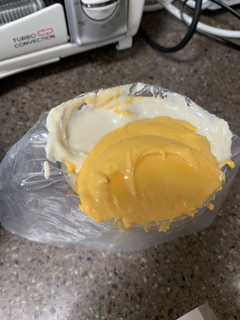 마블을 만들기 위해선 한 쪽에다 흰 반죽, 다른 쪽에 노란반죽 번갈아가며 채워주면 됩니다ㅎㅎ!!!