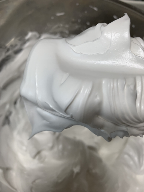 이렇게 고속으로 휘핑한다음 1단으로 낮춰서 머랭의 기포 정리를 해줬어!!