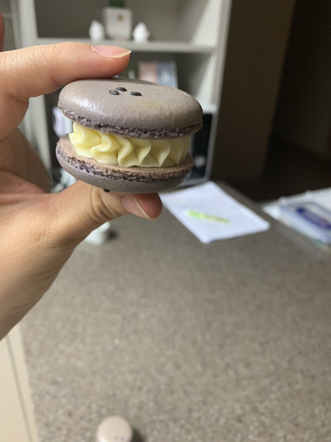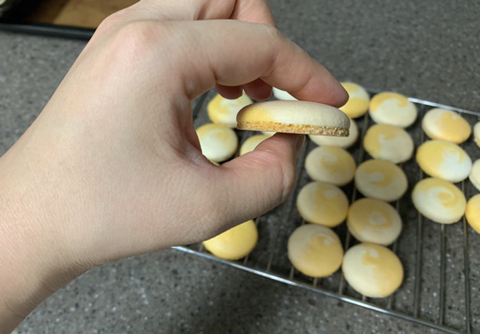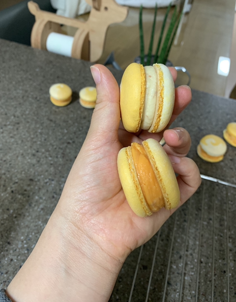 그 다음 필링을 짜서 마카롱을 만들어주면 된다!!(필링 짜서 뚜껑 씌우는 걸 몽타주한다고 표현하드라궁)