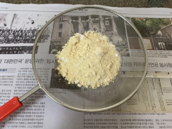 귀찮은 계량타임ㅠㅠ 아몬드가루와 슈가파우더는 함께 채반에 넣어서 굵은 알갱이들을 걸러줍니다!!