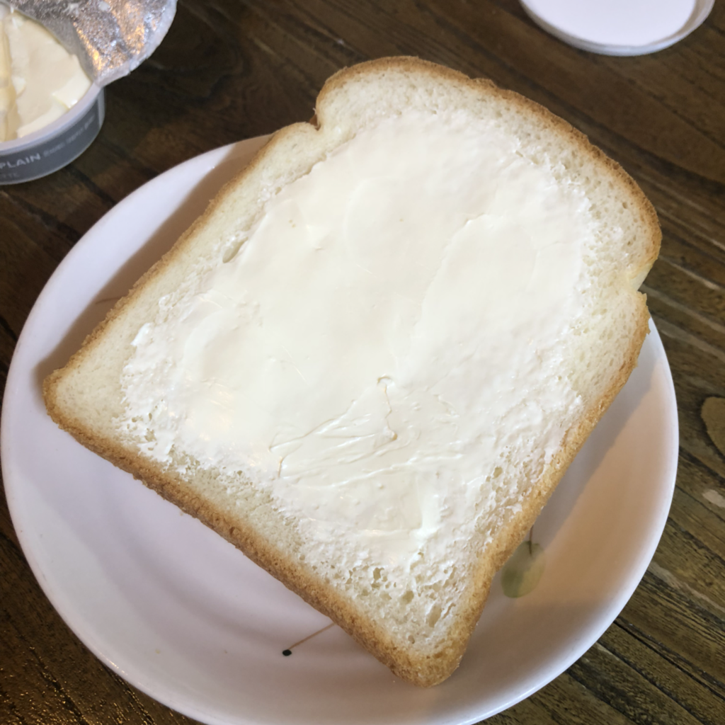 식빵 한쪽에 크림치즈 펴발라 양은 취향 껏