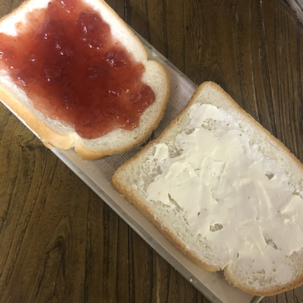 한쪽은 크림치즈 한쪽은 딸기잼.... 구워보자