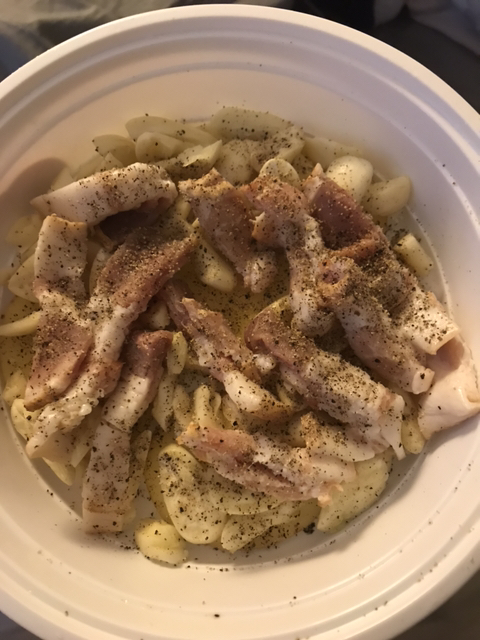 (나는 세 줄 넣고 싶었지만 두 줄밖에 남은 게 없었다고 한다. 베이컨 종류에 따라서 조리 시간이 다르긴 한데 나는 생베이컨(?) 이었어. 난 후추 좋아해서 많이 많이 넣음)