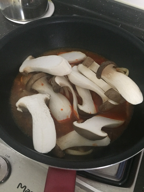 버섯악개이자 요리고자라서 그냥 대충 잘라서 넣었음.