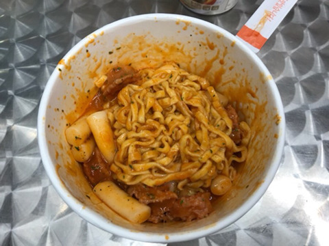 떡볶이 큰 컵일경우 물 선에서 3분의 2좀 안되게 받고 나처럼 작은거면 선까지 부어도돼!!