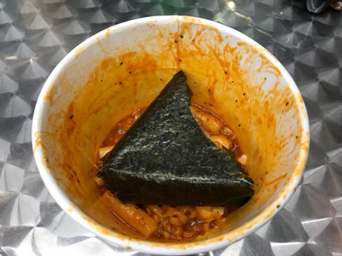어느정도 먹고 삼각김밥 넣어서 비벼먹는건 알지?
