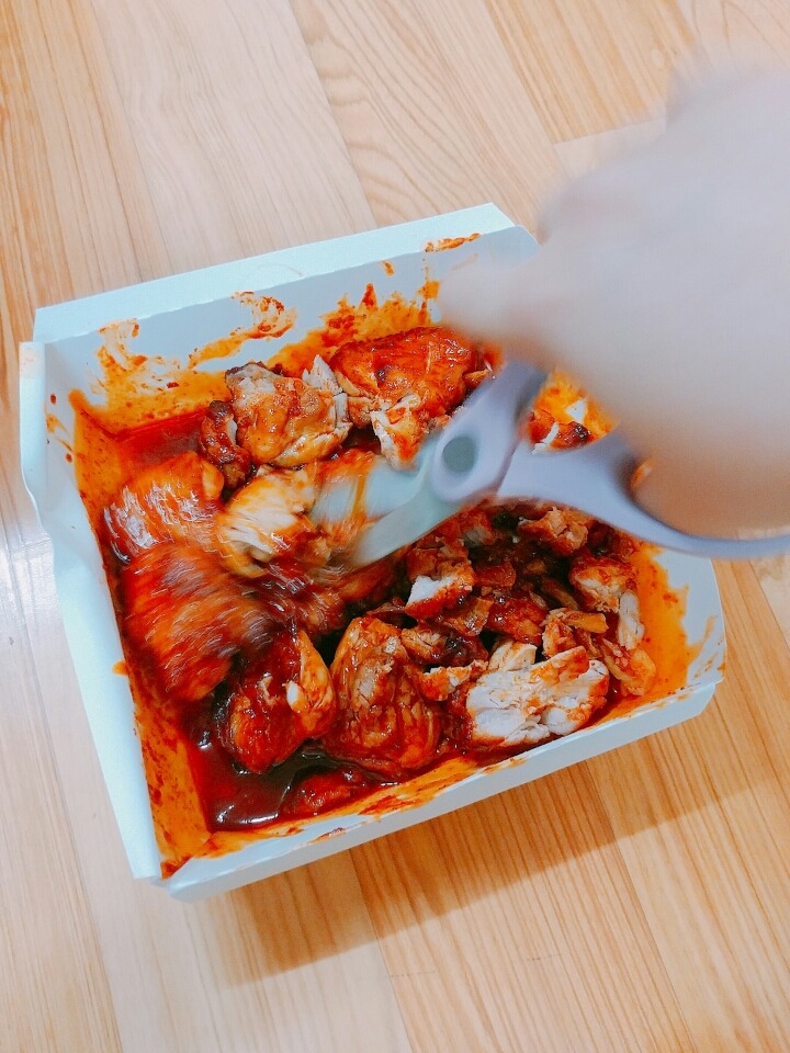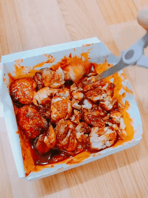 5) 치킨을 조자려! (그전에 미리 치킨을 잘라놔도 좋아!)