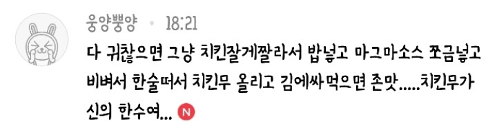 아니면 깍두기나 단무지 조져넣어도 맛있을듯..ㅠㅠㅜ
