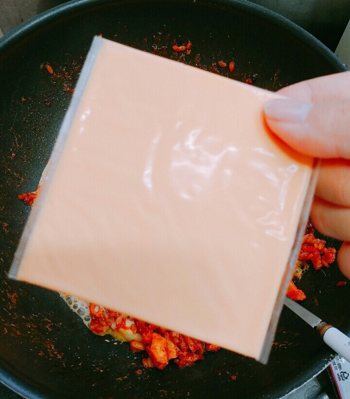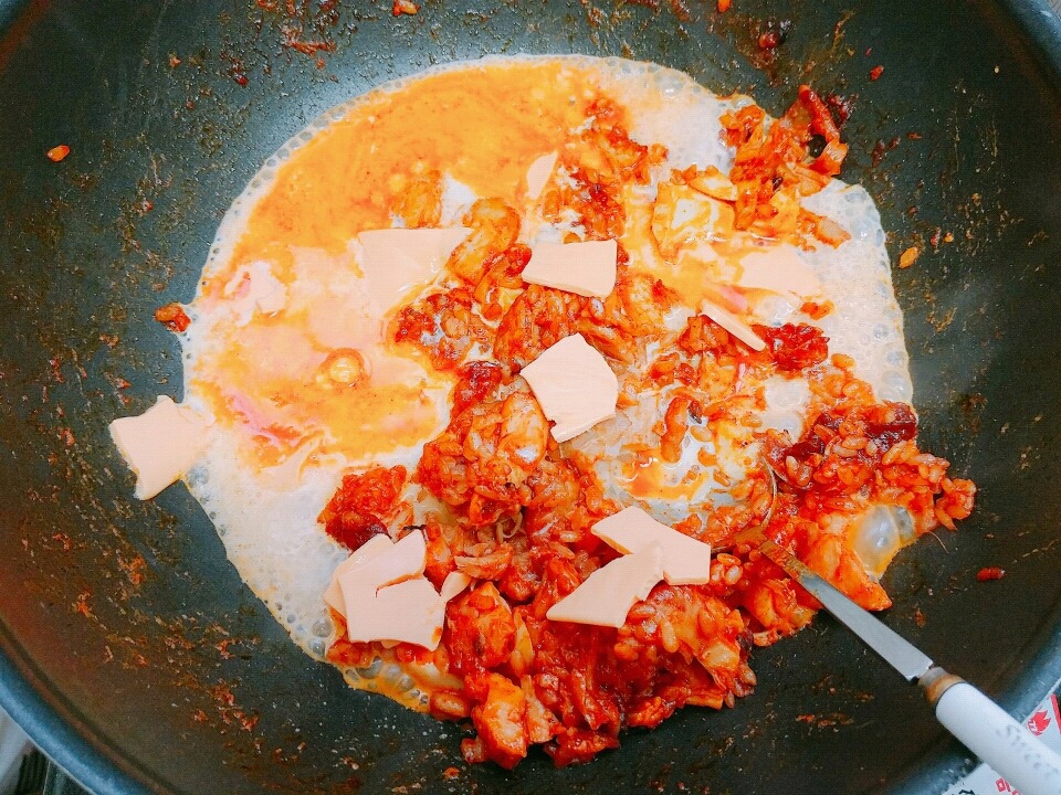 2) 나는 아까 볶음밥하던 데에 바로 우유랑 치즈 넣었는데