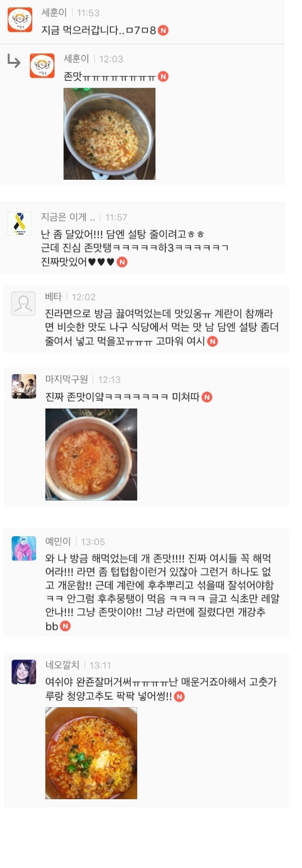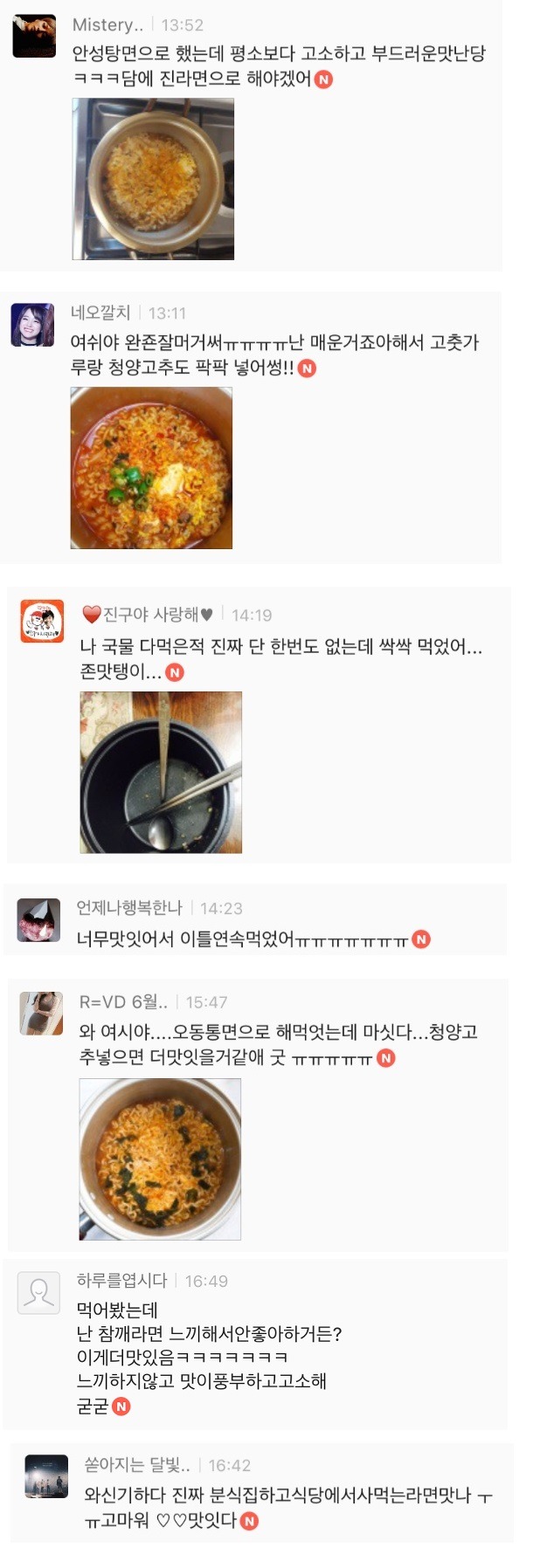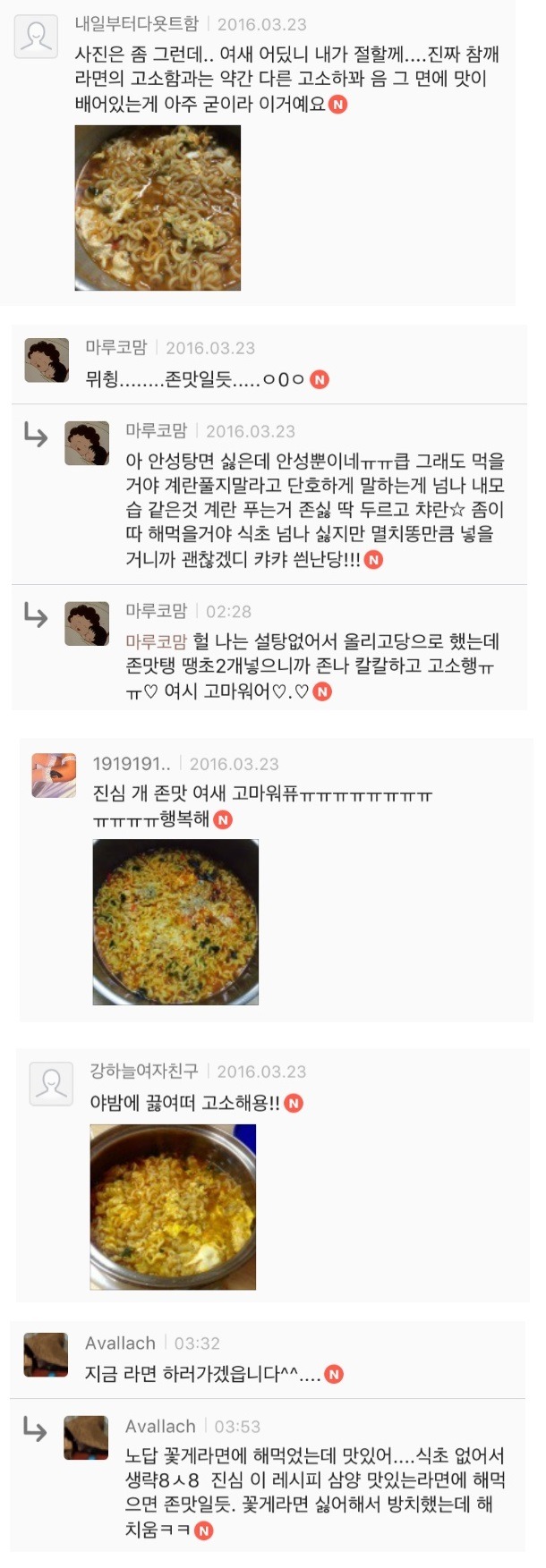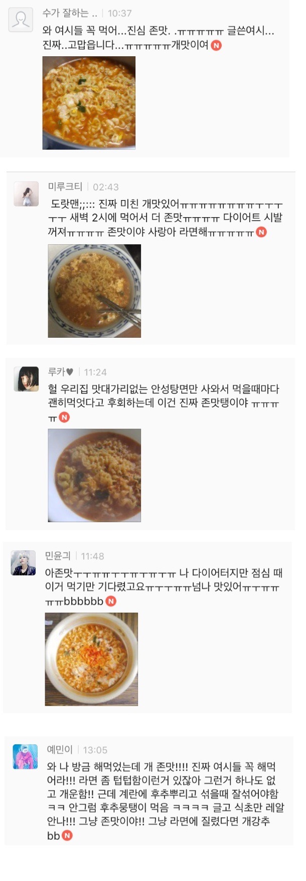 특히 주말에 여시들 라면 많이 먹나봐 ㅎㅅㅎ? 주말에 댓글 폭발하구요