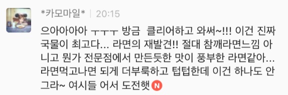 생각났어!!!!!!!!!!! 이거 분식집라면같은 맛이야 헤헤