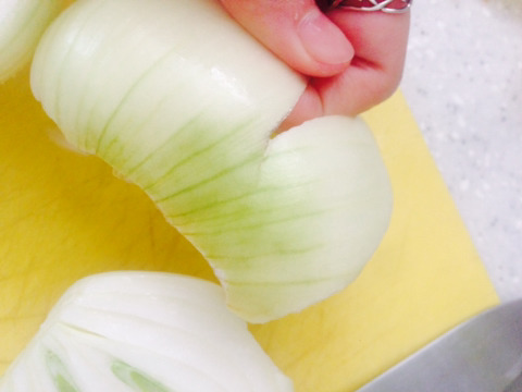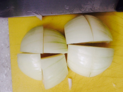 양파는 세로로 반 갈라서 사진처럼 4등분