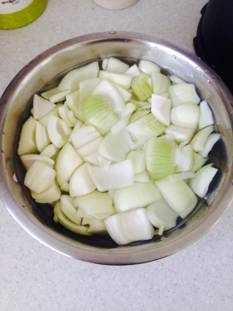 그동안 아까 찬물에 담아놓은 양파 물기를 뺍시다