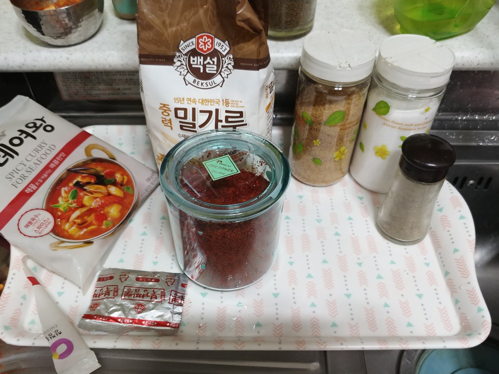 위사진에선 라면스프가 해물맛스프밖에 없어서 저걸사용했지만 매운라면 해물보단 기본맛이좋을것같구