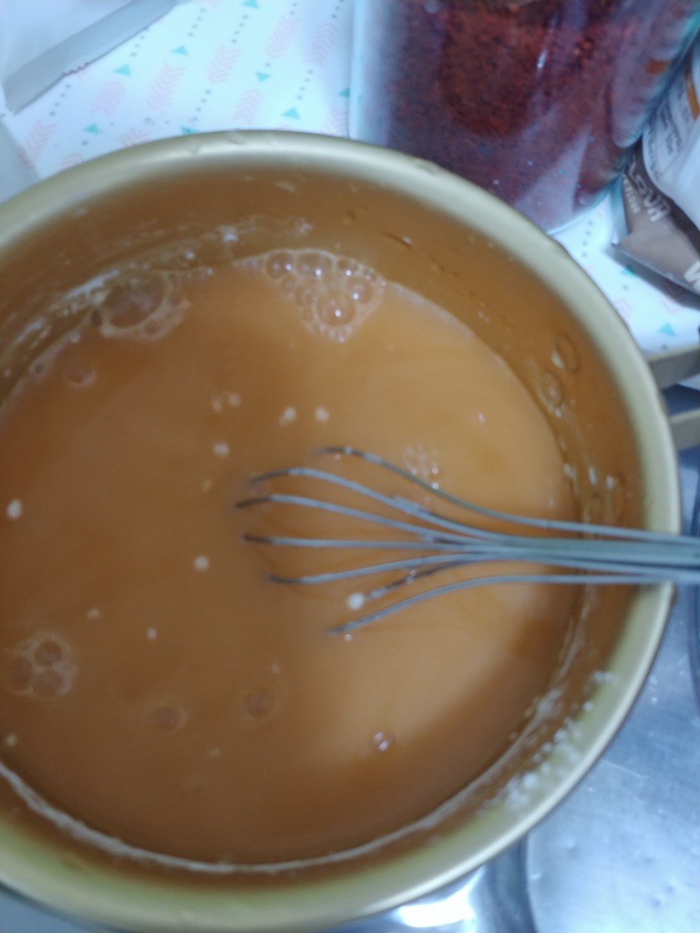 신전떡볶이소스는 액체가 아닌 가루로 본사에서 내려온다는점을 착안해 시도끝에 완벽하진않지만 비슷한결과를 얻음ㅋㅋㅋㄱ