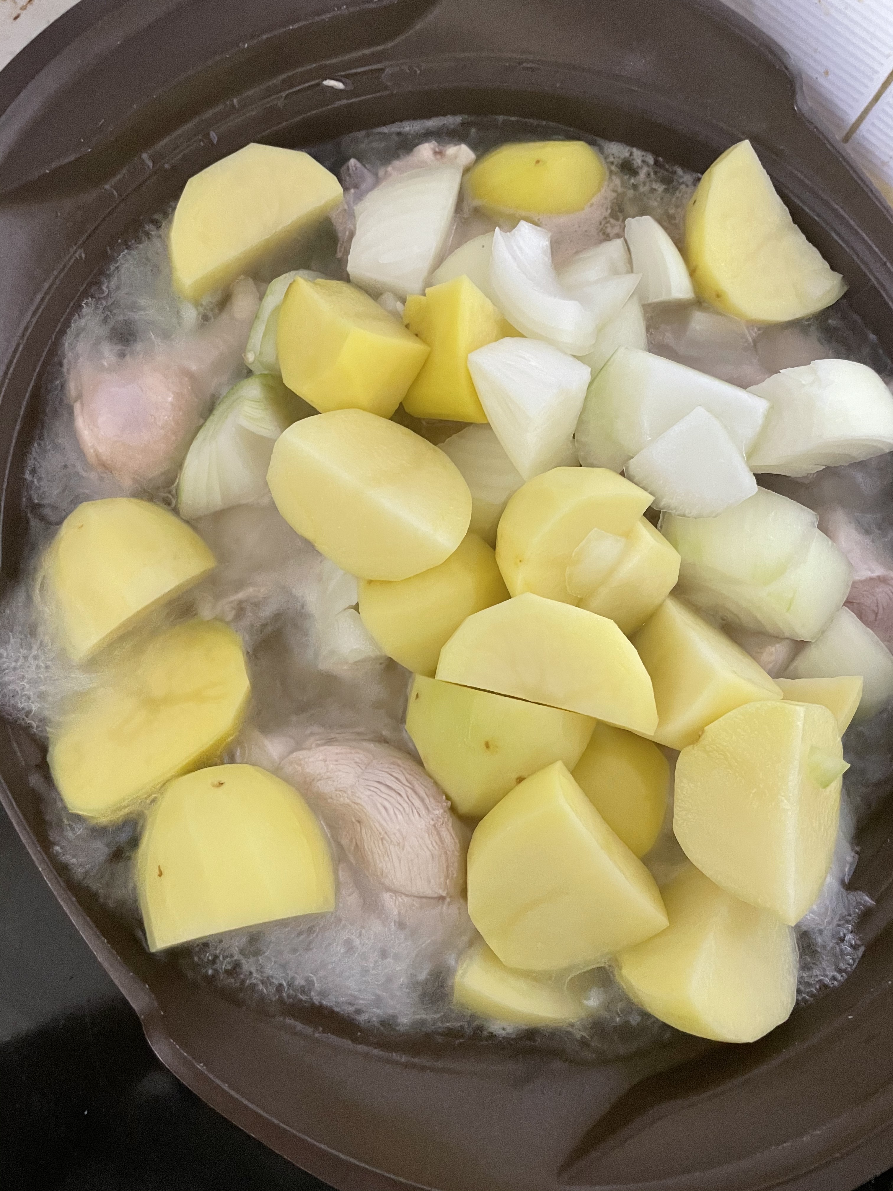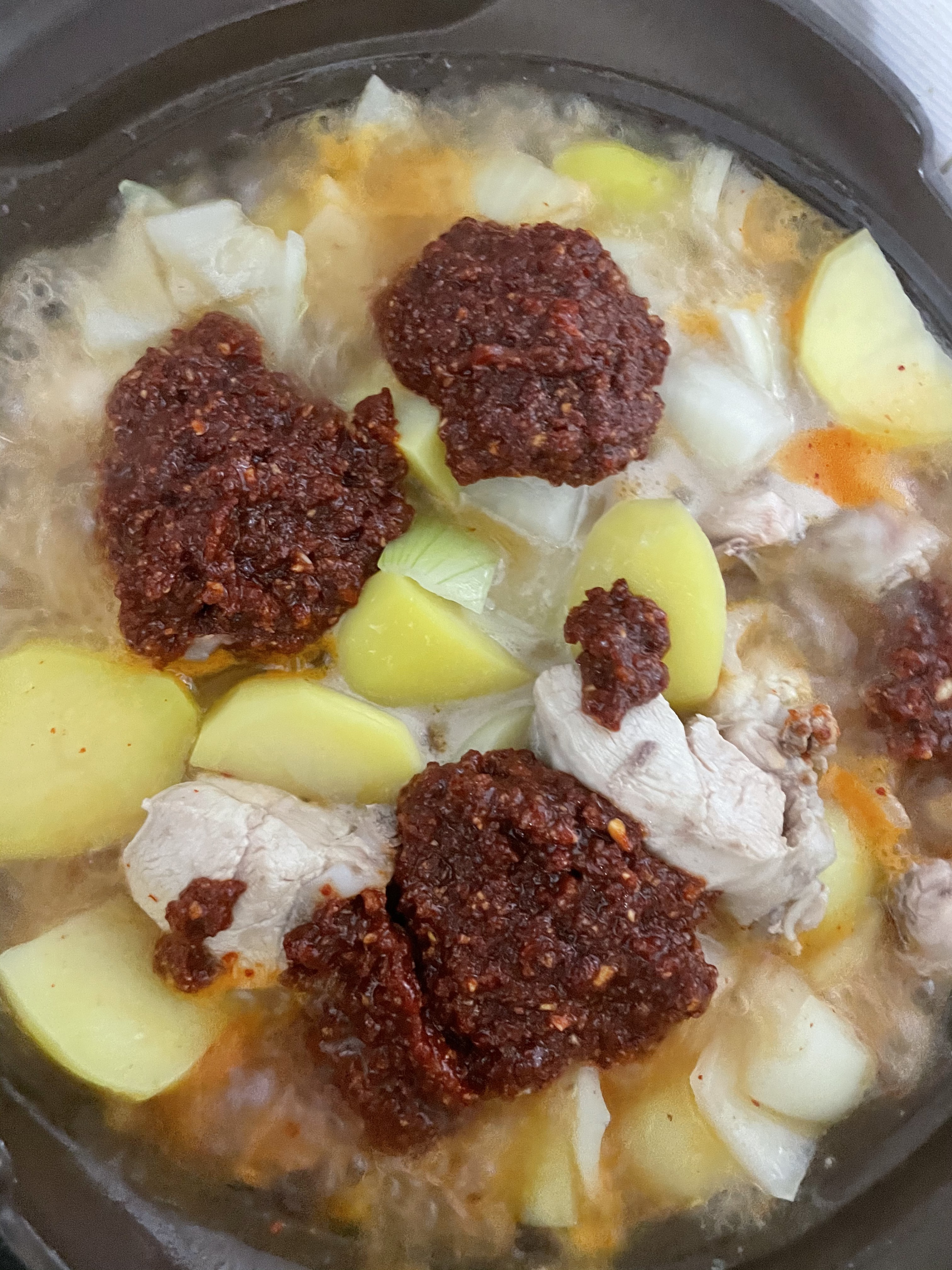 감자, 양파 넣고 계속 끓여줘