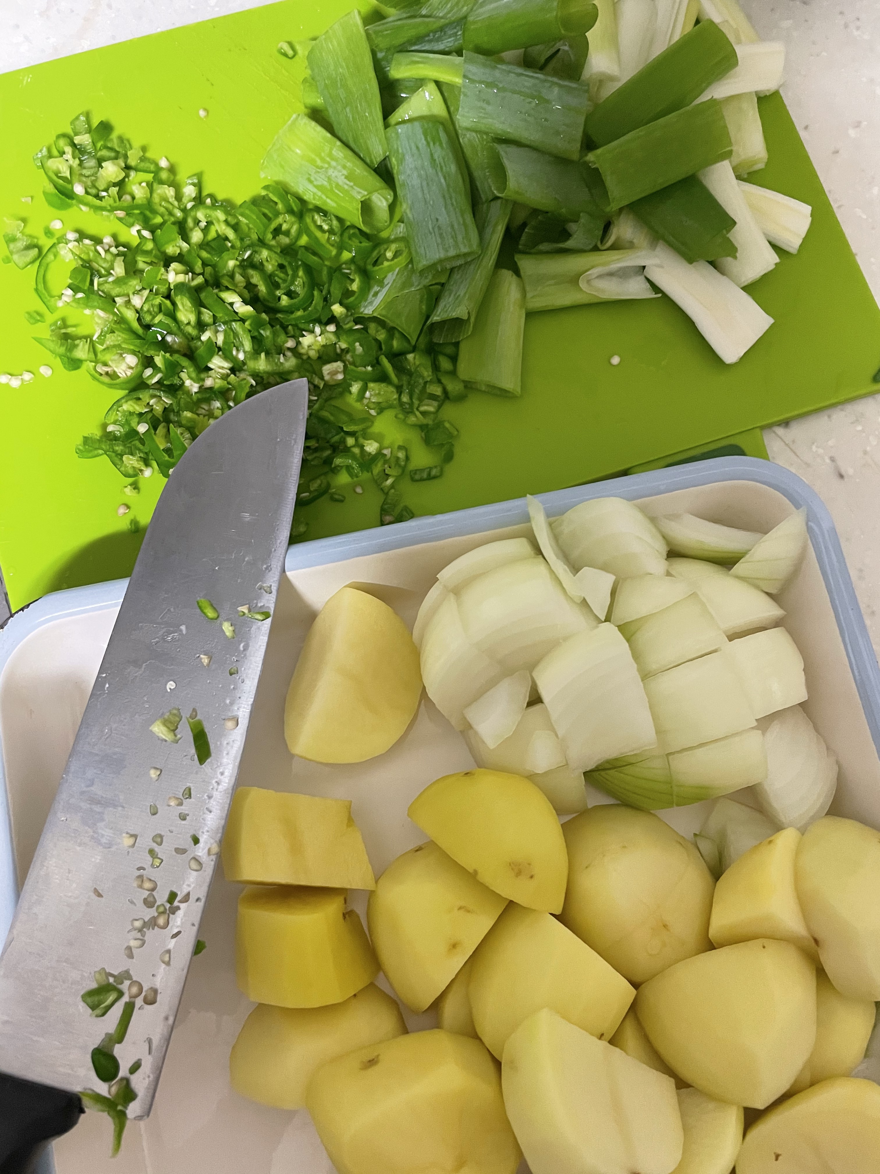 양파 한 개, 감자 서너개, 대파 한 개, 청양고추 취향껏, 물 600ml