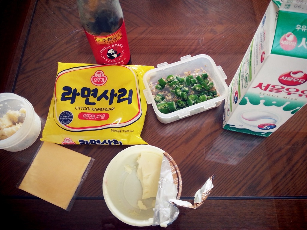 ♥필수♥:라면면 우유 팬더굴소스 노란치즈 다진마늘 청양고추