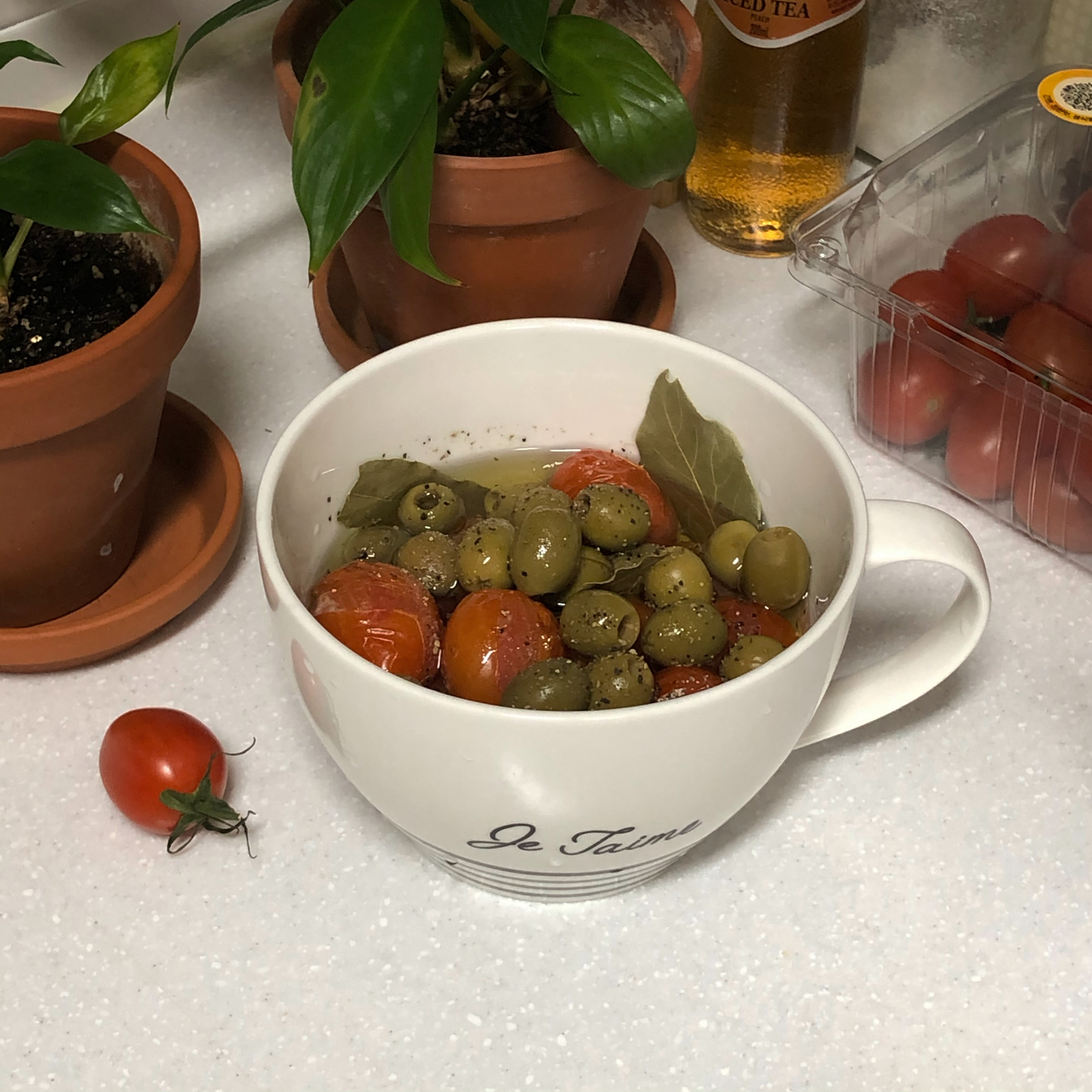 방울토마토를 살짝 데쳐서 올리브랑 같이 올리브유에 넉넉히 잠기게 두고 후추를 찹첩 뿌리고 월계수잎을 두어장 넣어서 올리브방토절임(?)을 만들어 먹는ㄷㅔ 간식으로도 좋고 와인안주로도 좋더라구^^