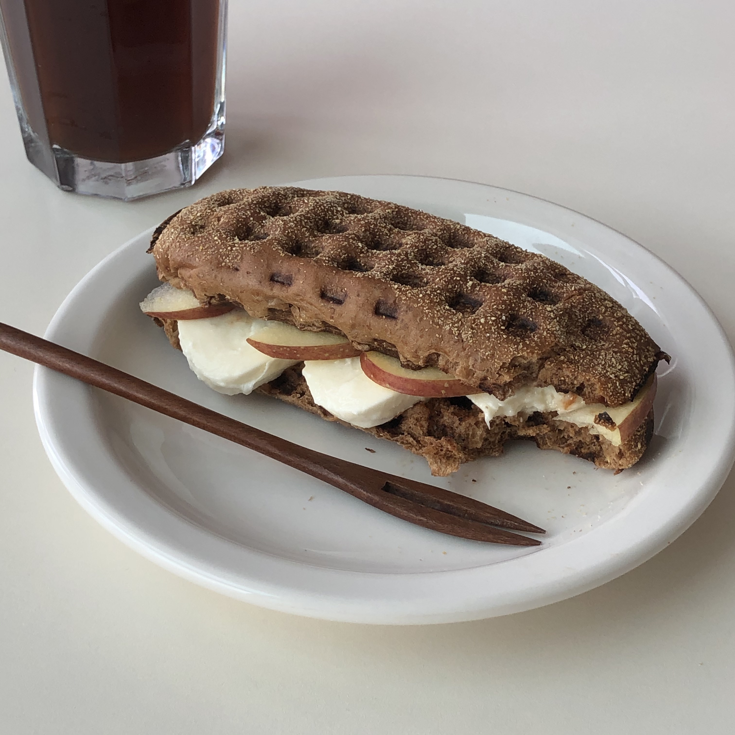 와플팬 산김에, 통밀브레드 사과 샌드위치