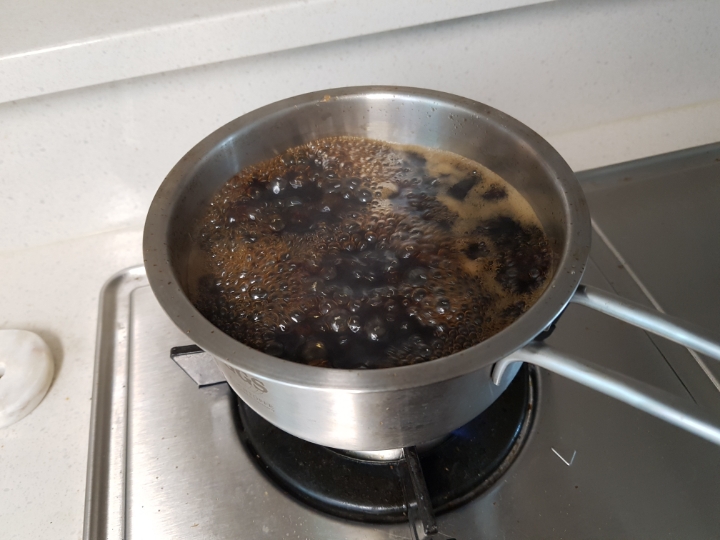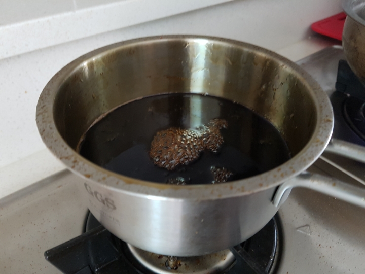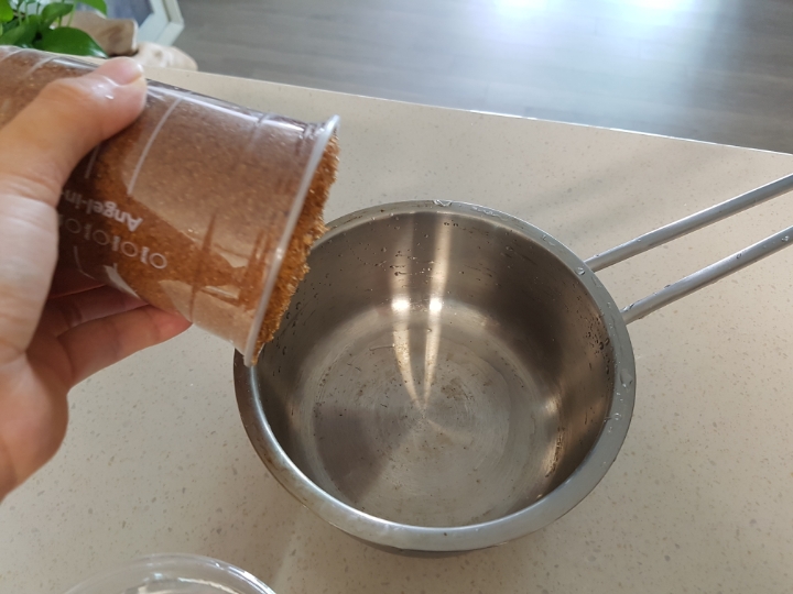 1. 계량해둔 흑설탕을 냄비에 넣는다