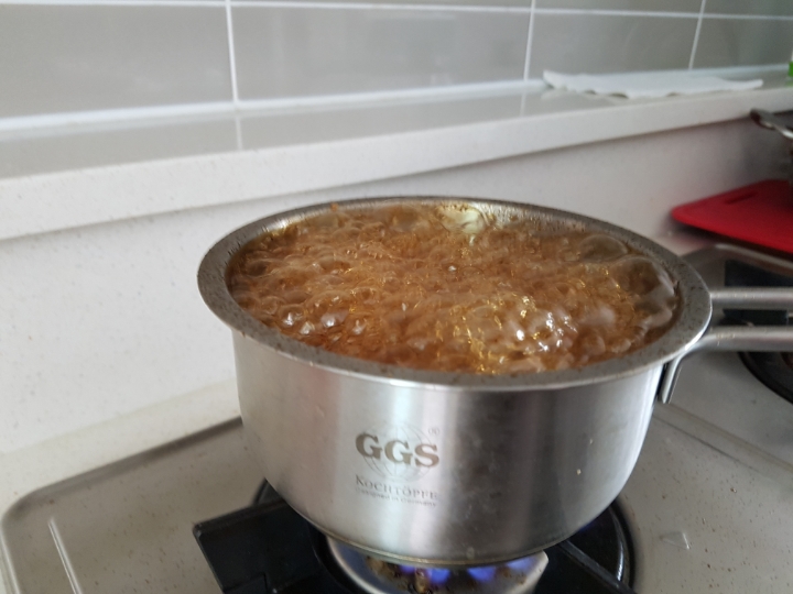 저렇게 냄비 끝에 시럽이 살짝 굳은 듯이 맺혀있으면 잘 된거야!