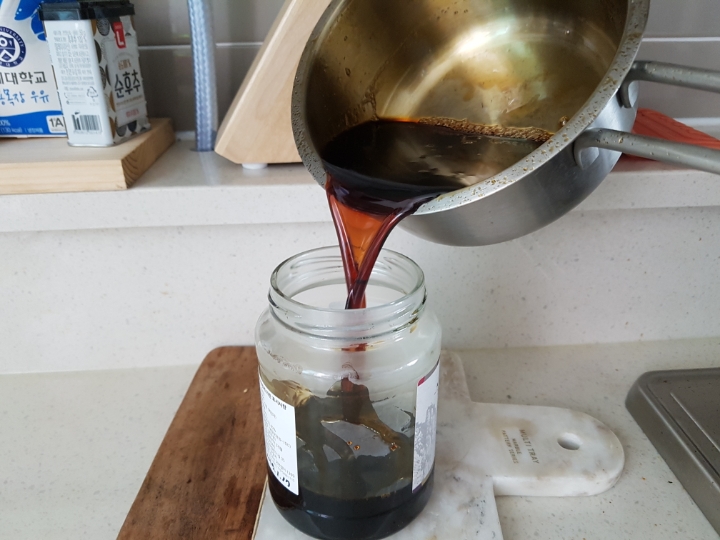 실온에서 식힌 후 하루정도 냉장고에 넣어놓으면 진득한 시럽의 흑설탕시럽을 먹을 수 있음!