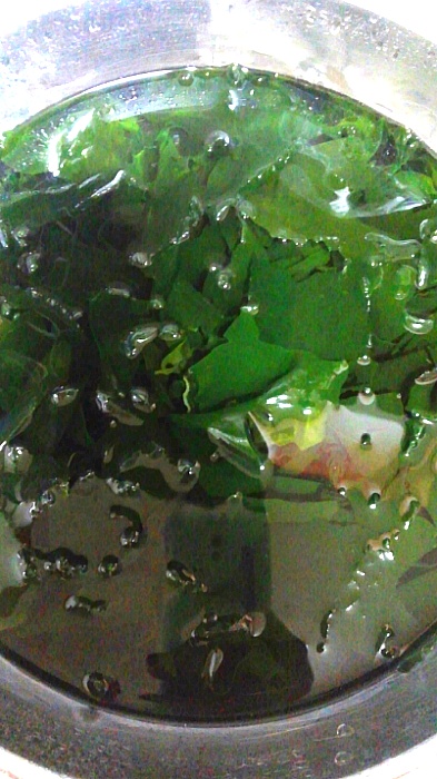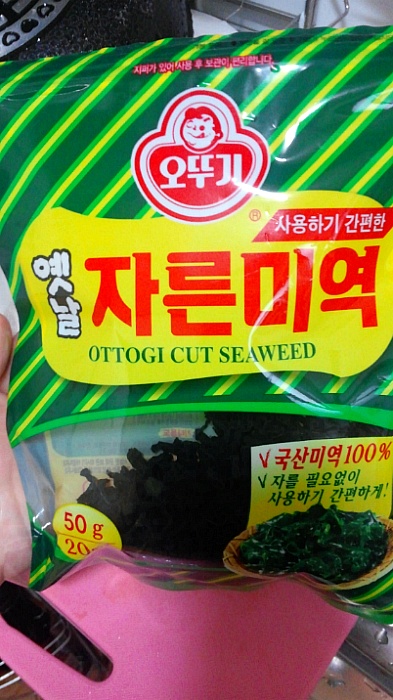 양푼에 물 받아서 미역을 넣고 불려