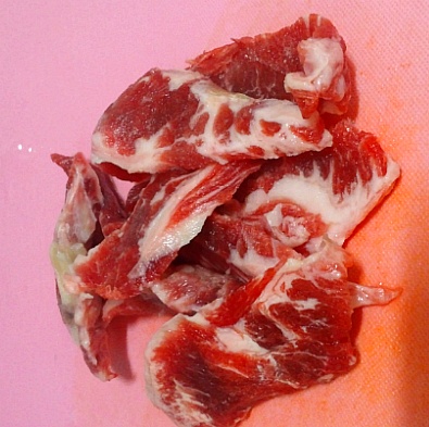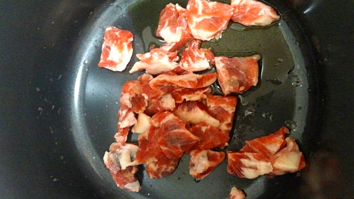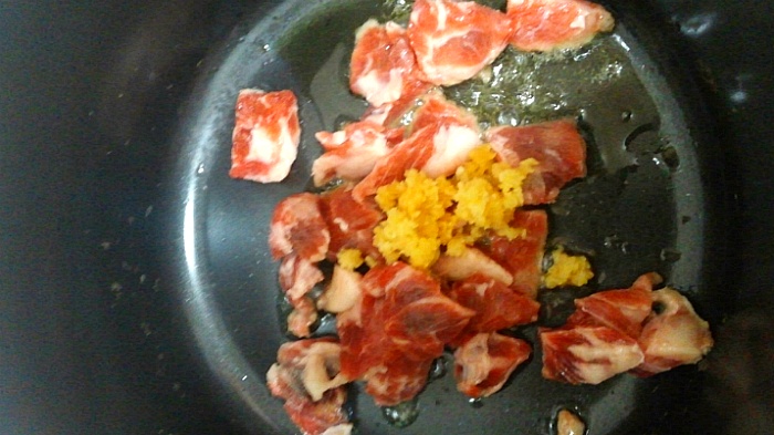기름 두른 냄비에 고기 투척