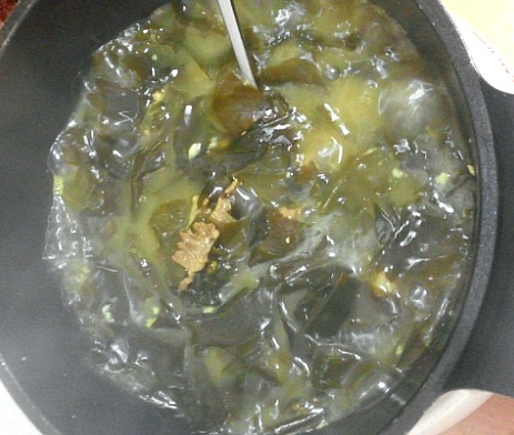 그 담에 미역이 푹 잠길만큼 물을 붓고 냄비 뚜껑 닫고 끓이면 된다~~~~