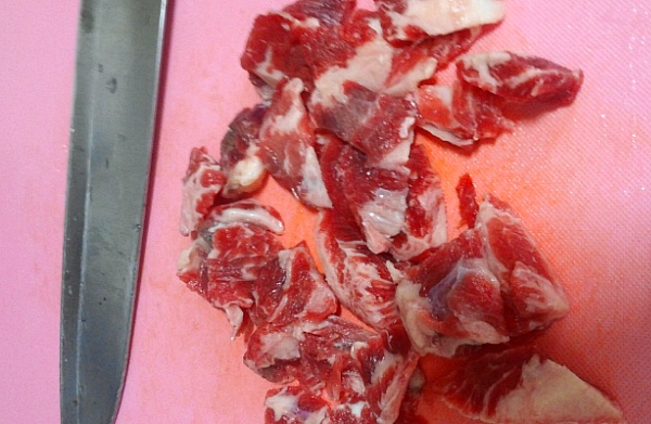 이렇게 쪼꼬맣게 고기 토막내