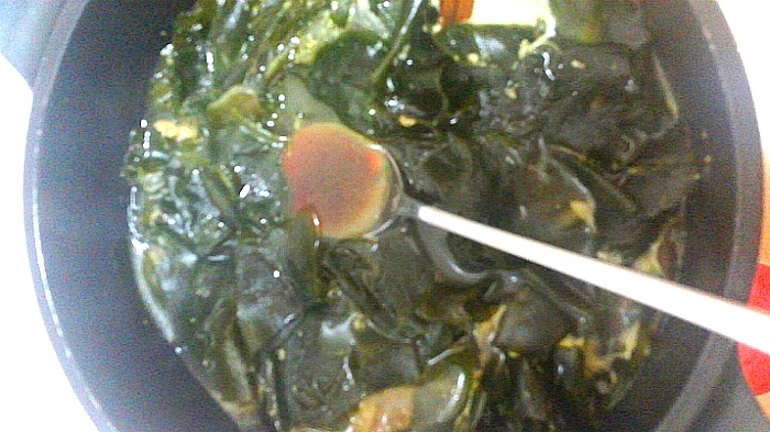 끓이다가 간장 한스푼정도 넣어서 간 해주고 모자란 간은 소금으로ㅎㅎ