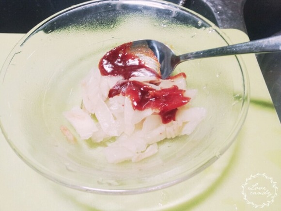 2. 식초 아빠 숟가락으로 1스푼, 물엿 아빠 숟가락으로 1~2스푼(달큰한거 좋아하는 여시들은 쪼꼼 더 넣어!)
