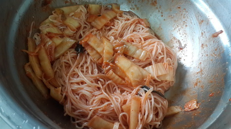 배추김치를 물에 헹구어서 고춧가루를 쫙! 빼
