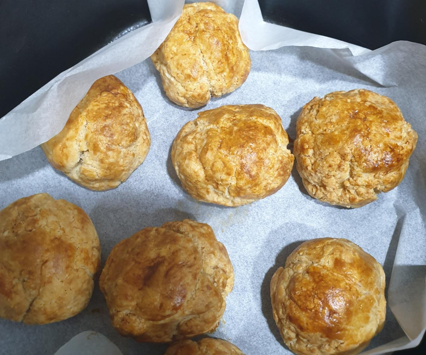 밀가루, 버터, 베이킹파우더, 소금, 설탕, 달걀, 우유
