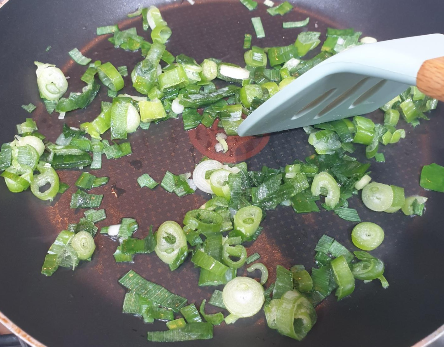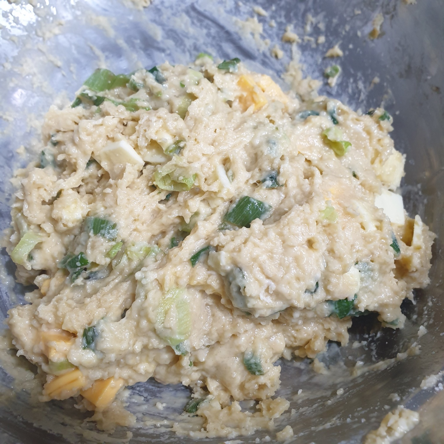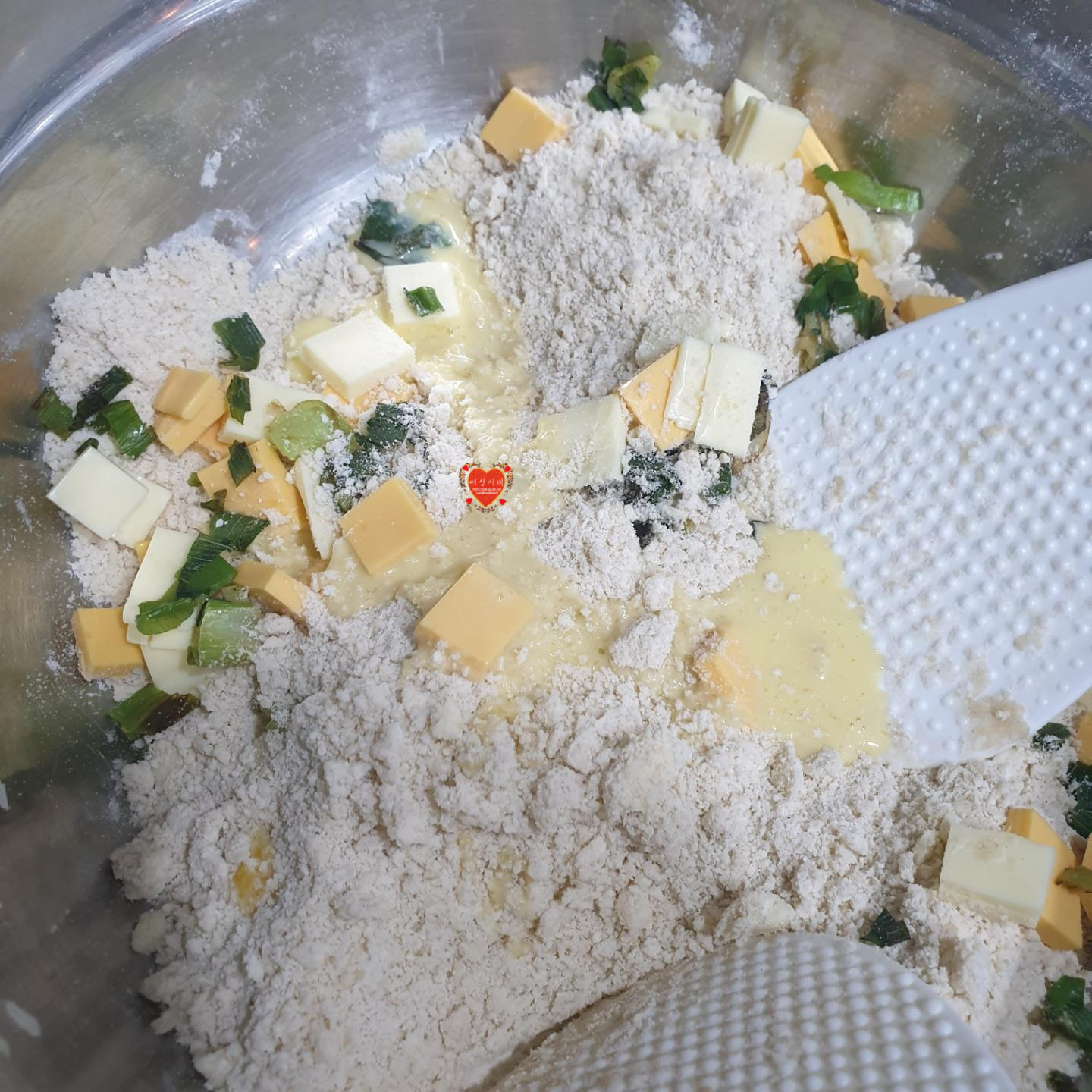 아까 볶아둔 대파, 치즈, 달걀물을 넣으면서