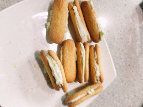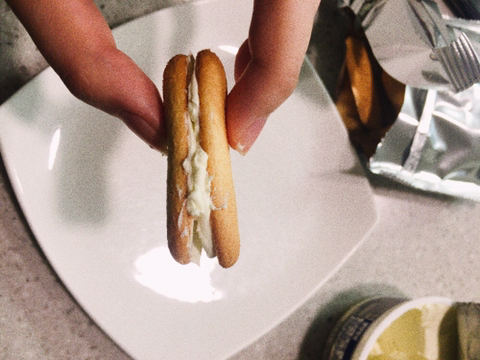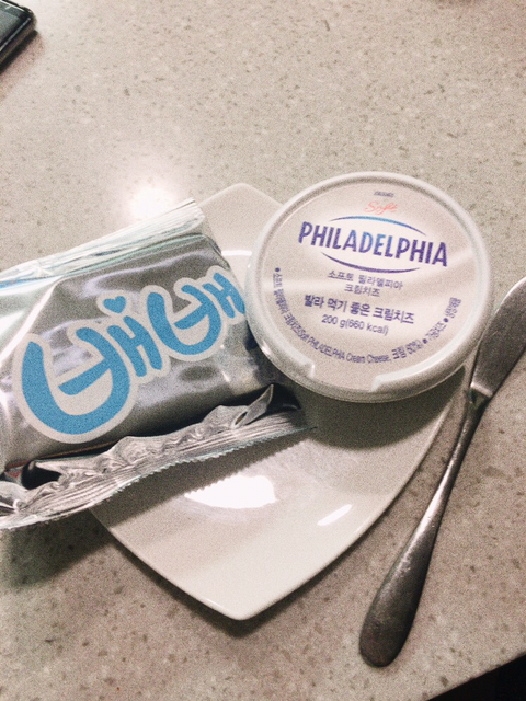 한쪽면에다 크림치즈를 바른 배배를 두개 만들어서 합쳐!!!