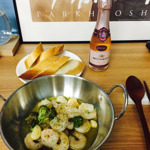 바게트위에 마늘 새우 올리고 올리브유 적당히 뿌려 먹으면 존맛임