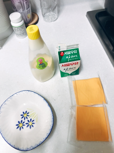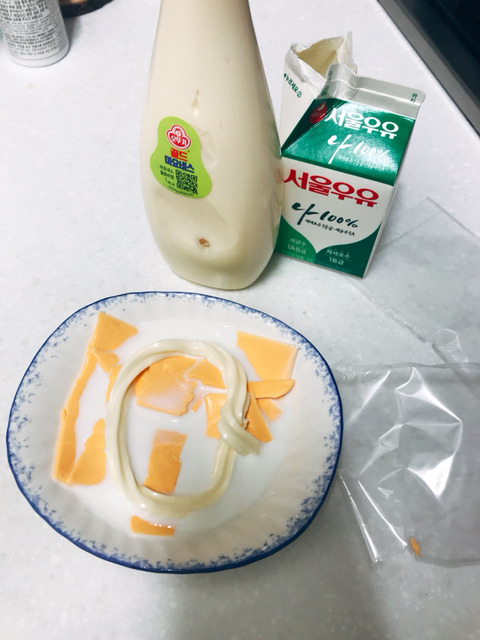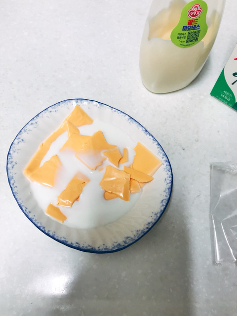 치즈 깔고 우유 한컵 그 위에 치즈 또 그 위에 우우 한컵